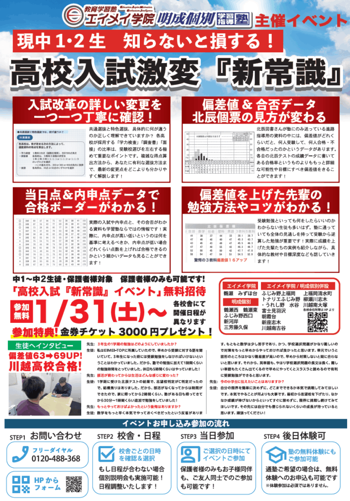 ここ数週間で ・新中1生のきょうだいを入塾させたい! ・中学に向けて明成を検討しています! というお問い合わせが増えてきています👀 小学校の授業もいよいよ復習だけになったり、 中学校の制服採寸や 卒業文集の作成(最近 […] -