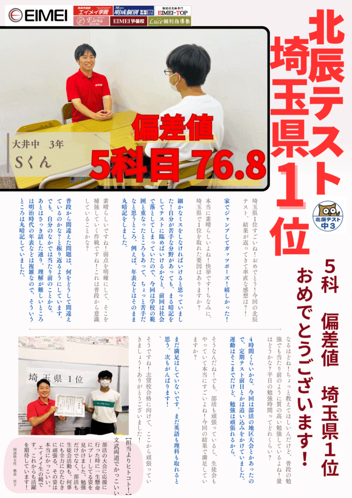 この生徒も勉強でめちゃくちゃ頑張っている。 「できなかったこと」をすぐに分析して、「ここがこうだったから、次はこうする」と言える生徒。 今回のテストではうまく実力が発揮できずに悔しい思いをして […] -