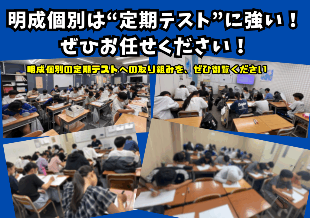 明成個別学習指導塾では、学校の定期テスト対策に力を注いでいます。