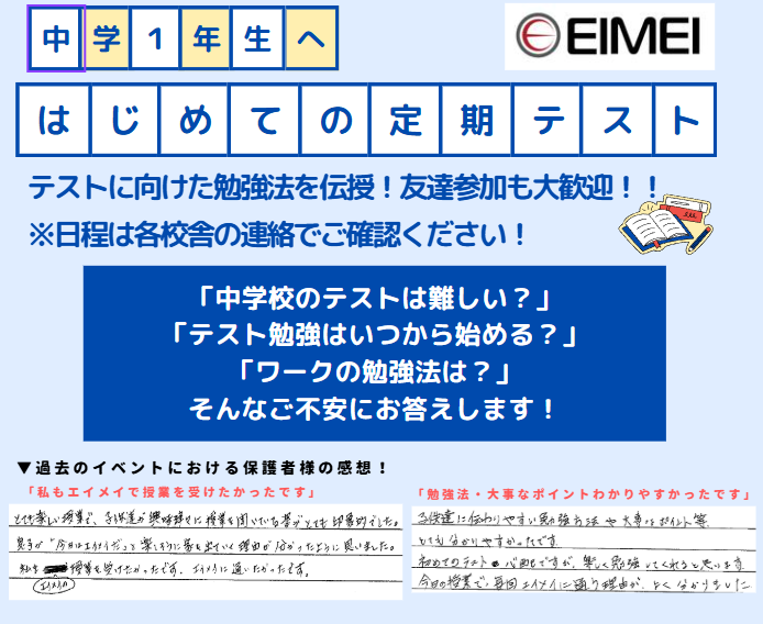 トナリエふじみ野(旧ソヨカ)校舎/明成個別 【中学1年生対象!はじめての定期テスト】