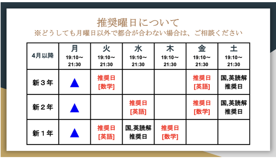 ①推奨曜日のご確認 ②コースの申請