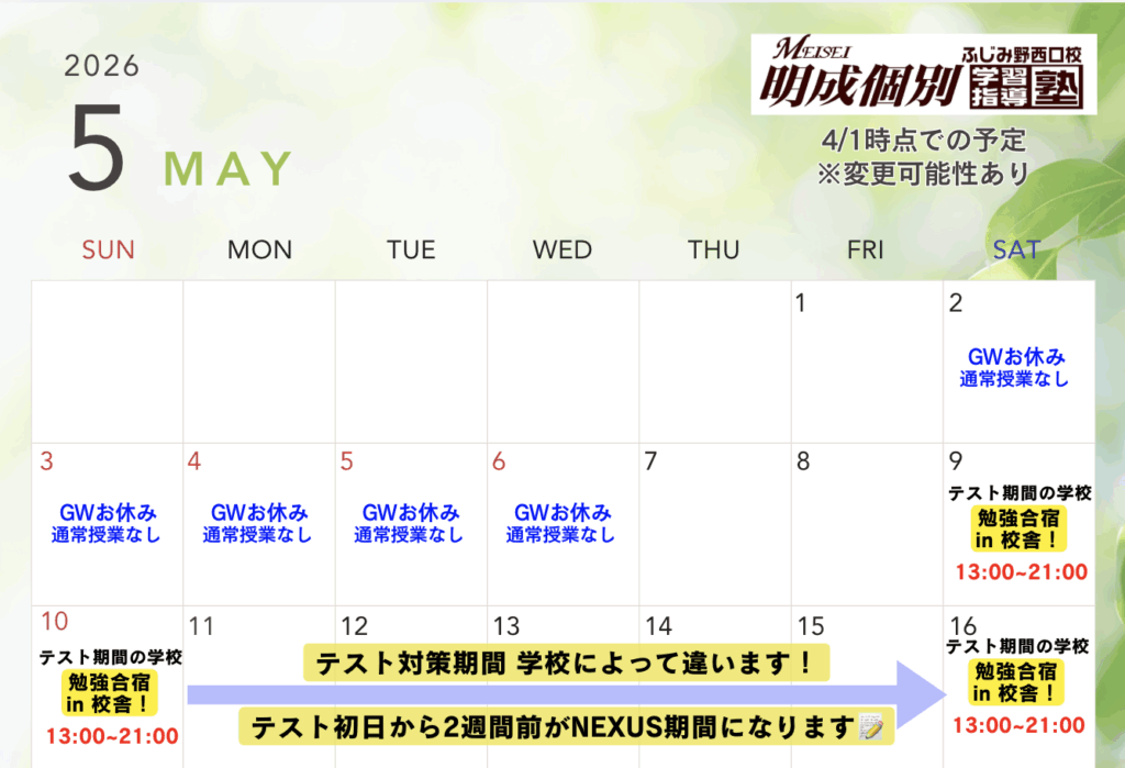 4月下旬〜5月上旬のGW期間の予定は最終調整中です。今しばらくお待ちください。