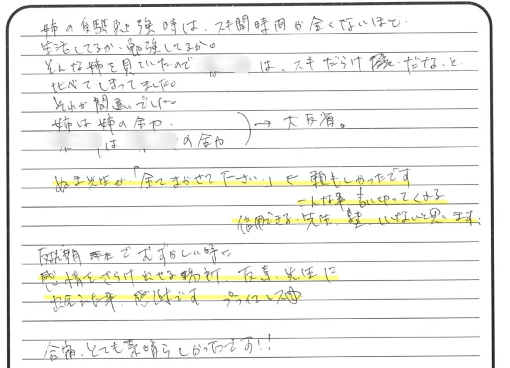 【ふじみ野】親から見た明成 〜保護者の受験体験記シリーズ2024⑥〜 投稿日 2024年3月31日 更新日 2024年4月5日 著者 まんとし / 佐藤方俊 カテゴリー まんとしブログ|明成ふじみ野 カテゴリー 明成個別ふじみ野西口校舎 ほかの塾に通っていたら、息子はここまで頑張っていなかった 本当に親子共々お世話になり、ありがとうございました。ほかの塾に通っていたら、息子もここまで頑張っていなかったと思います。また私たち親子関係も全然違ったものになっていたと思います。勉強だけではなく、人として大切なこともいっぱいっぱい教えていただきました。本当にありがとうございました。関連 シェア ツイート LINE 親から見た明成 この記事を書いた人 まんとし / 佐藤方俊 記事一覧