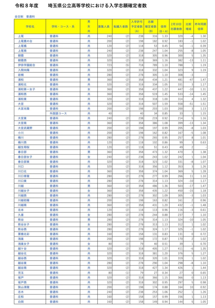 【2/20倍率】2026(令和8)年度 埼玉県公立入試 〜倍率の攻略法〜