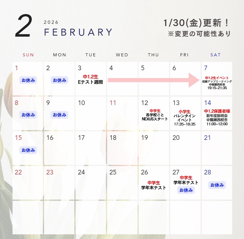 12日(木)~ 学年末テスト対策 Nexusスタート!!