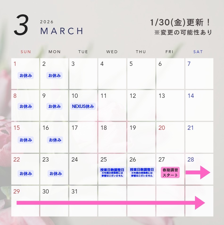 27日(金)~ 春期講習スタート!(詳細は後日お知らせします。)