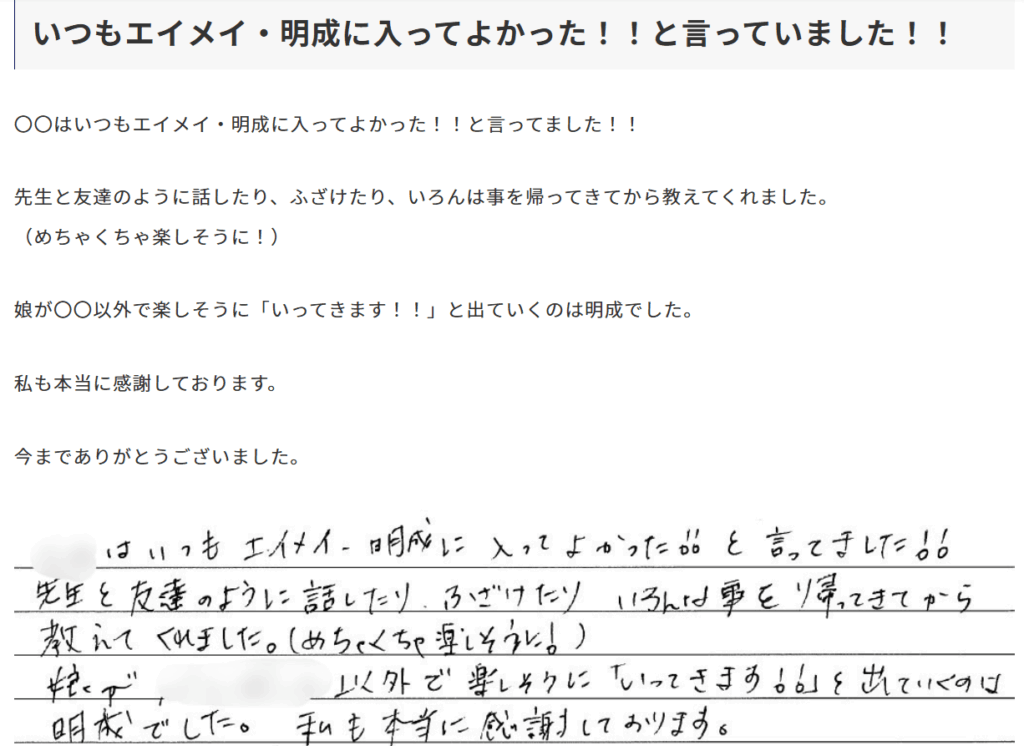 今年、受験を戦い抜いた保護者様からは、こんな嬉しいお言葉をいただいています😢