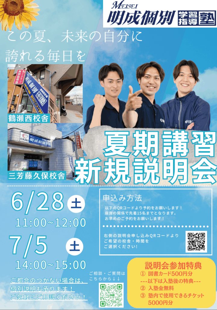 【鶴瀬西校、三芳藤久保校】夏期講習のご説明、随時実施中!