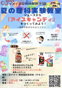 夏休み前に楽しく理科を学ぼう!「アイスキャンディ作り実験教室」開催!