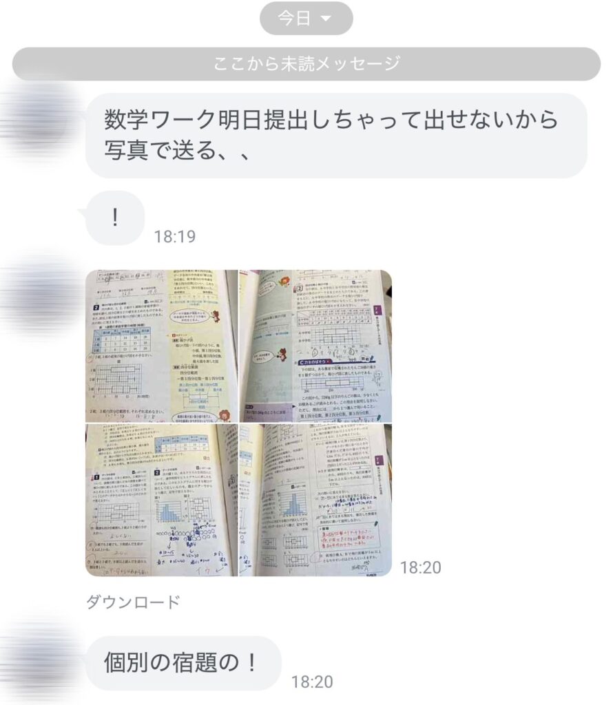 「明日学校でワーク提出しちゃって宿題出せないから、先に送っておくね!」