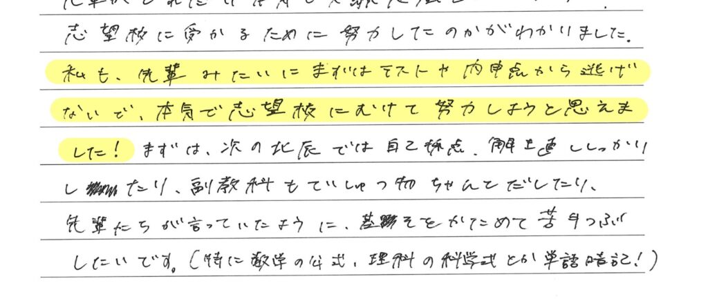受験の大切な情報などたくさんメモしてくれていましたね!