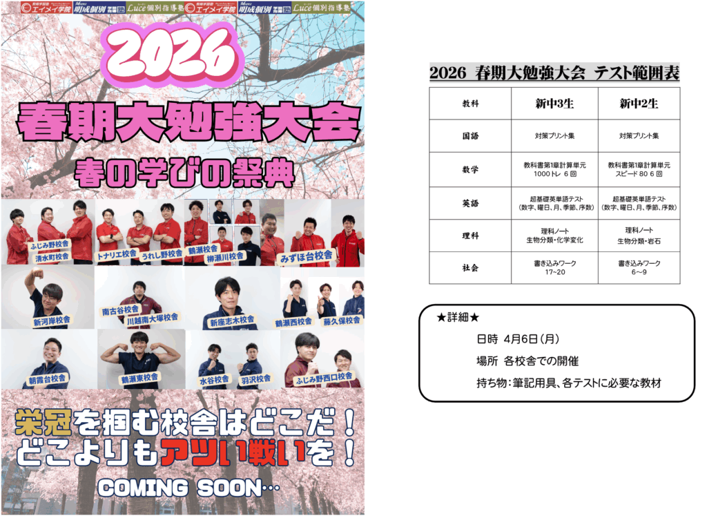 新河岸校舎の君たちは俺との戦いにもなります!笑