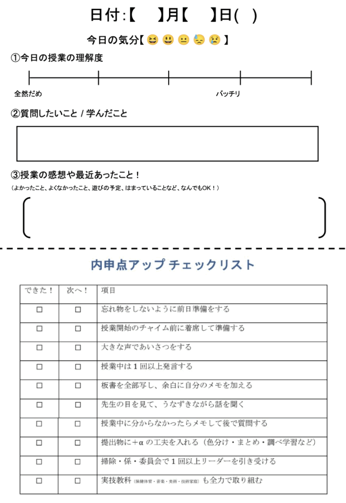 この内容は毎回の授業のたびにチェックをしてもらうので、何度かチェックをするとその内容が習慣となっていきます。