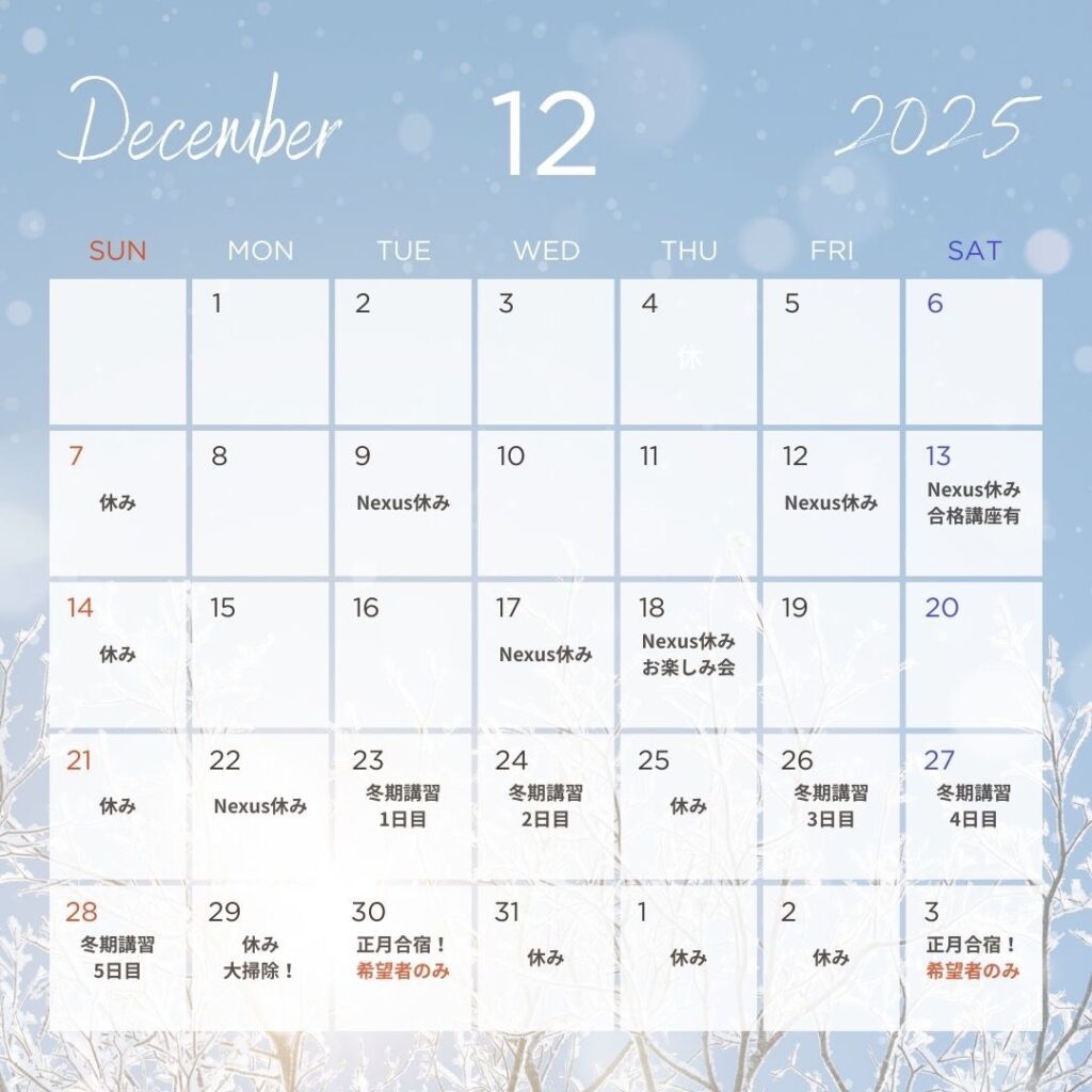 ※Nexus休みは小学生・そろばん・中学生・高校生全員がお休みとなります!