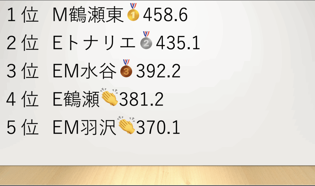 とはいえ、結果も気になるだろうと思うので、1年生の校舎平均を発表していきたいと思います!