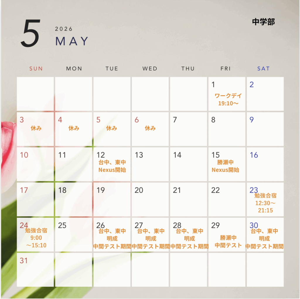 【鶴瀬東中学部】2026年4,5月スケジュール