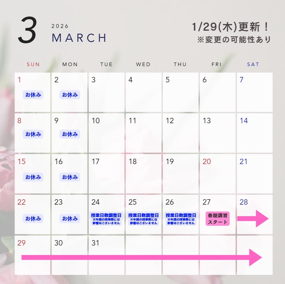 24日&25日&26日 授業日数調整日でお休み