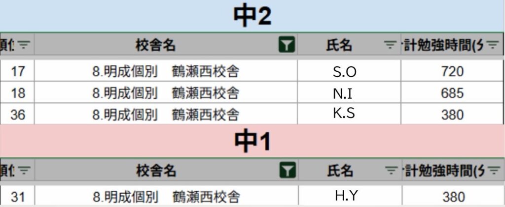 2年生の2人は、全校舎の中でもTOP20に入る勉強時間でよく頑張っていましたね✨