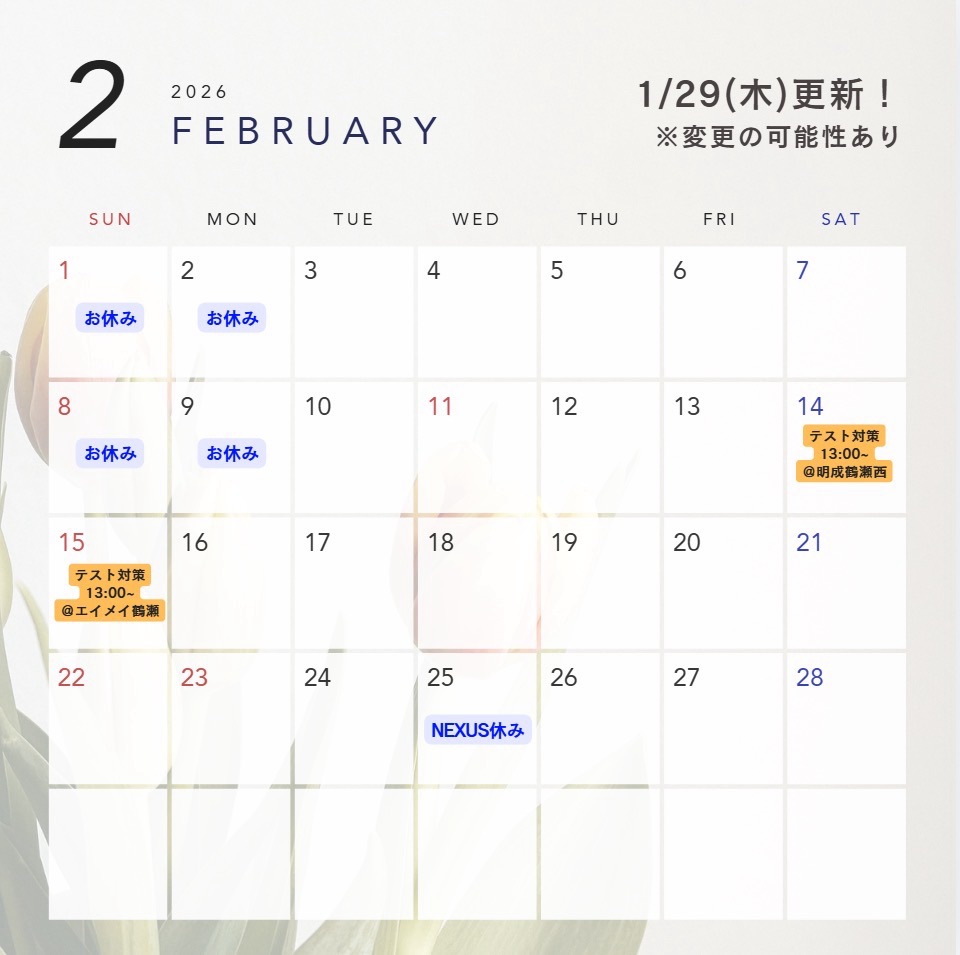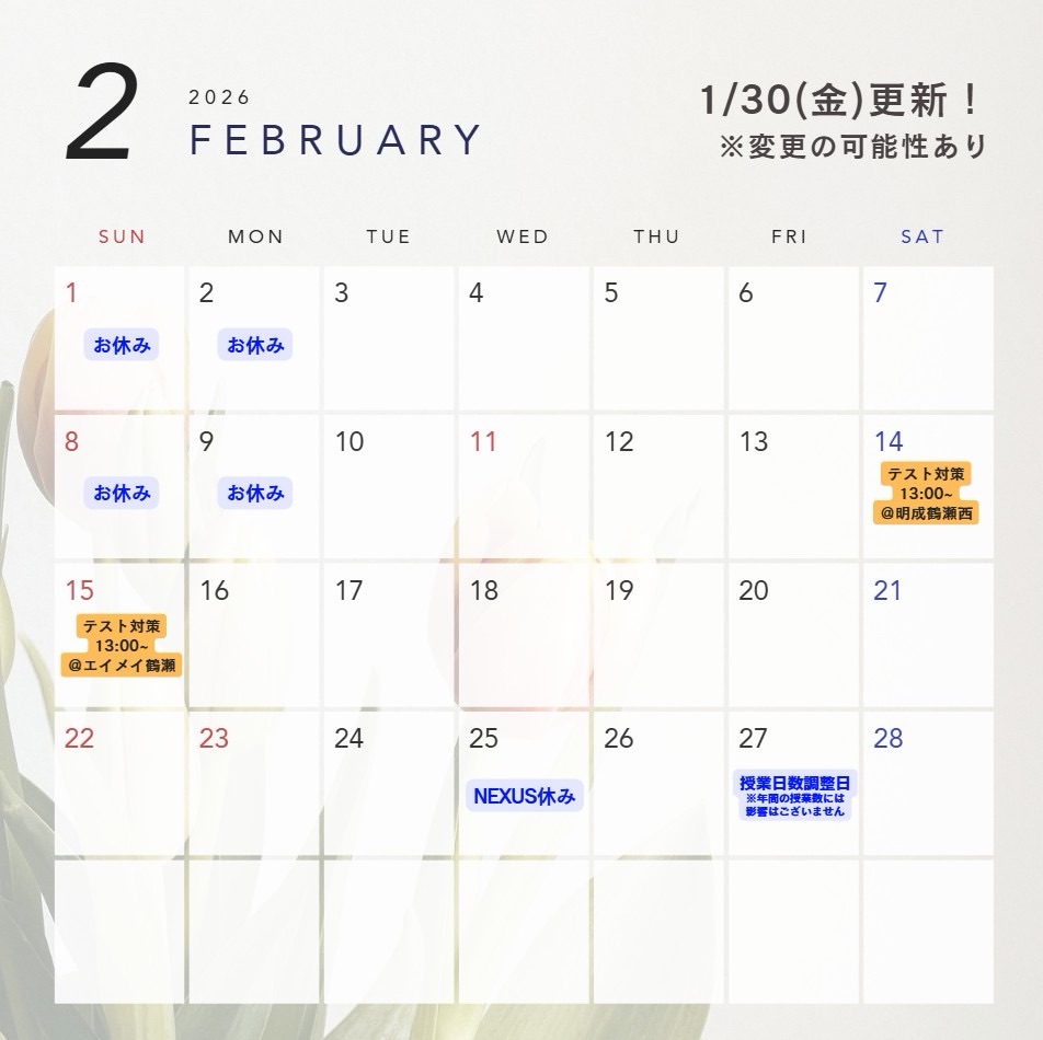 高校生の2月、3月の予定表となります!