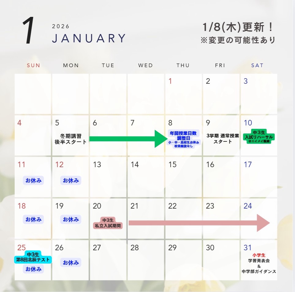 9日(金)~3学期 通常授業開始!