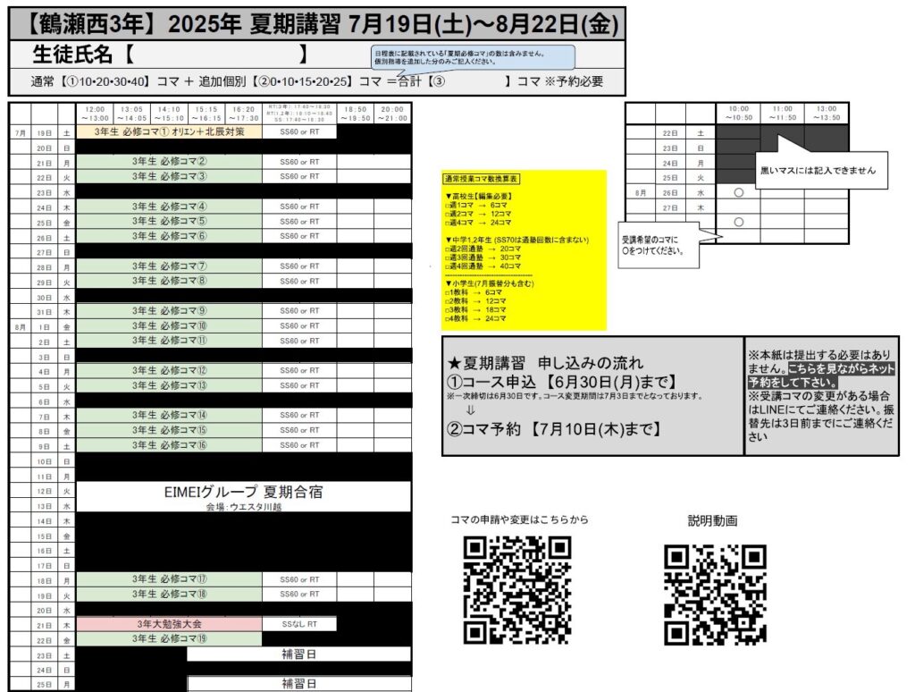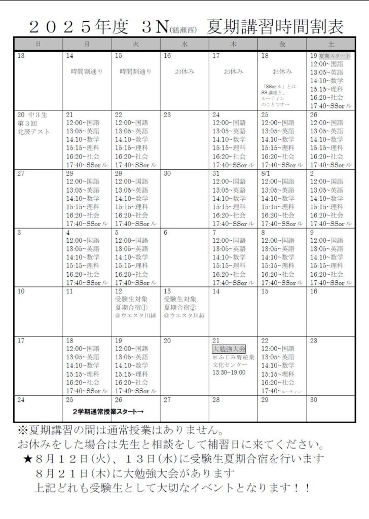 ・SS70&60取得者は、7/17,18,8/22を除く全日程に【17:40~18:30】で授業があります。