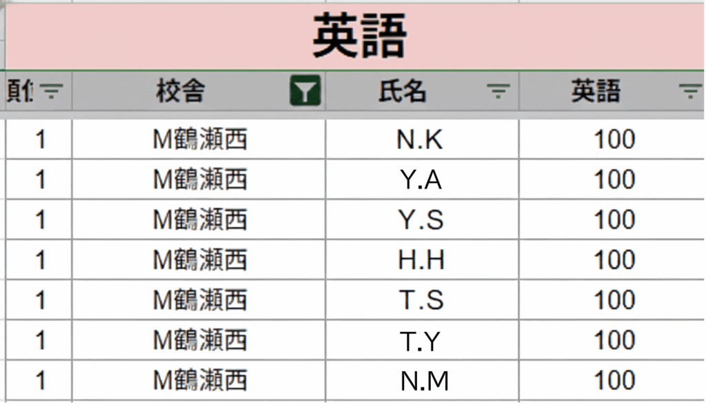 英語はなんと7人が満点!!!