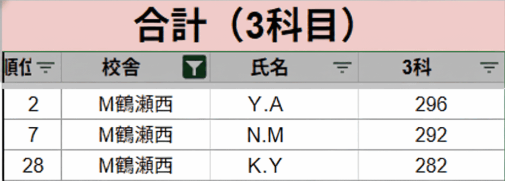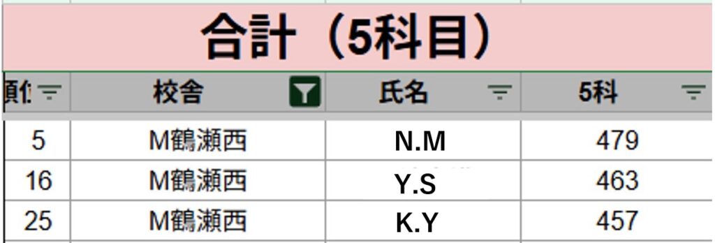 以下各教科と3教科・5教科の上位者をまとめていきます!