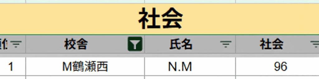 社会は全体で満点がおらず、96点がトップ!