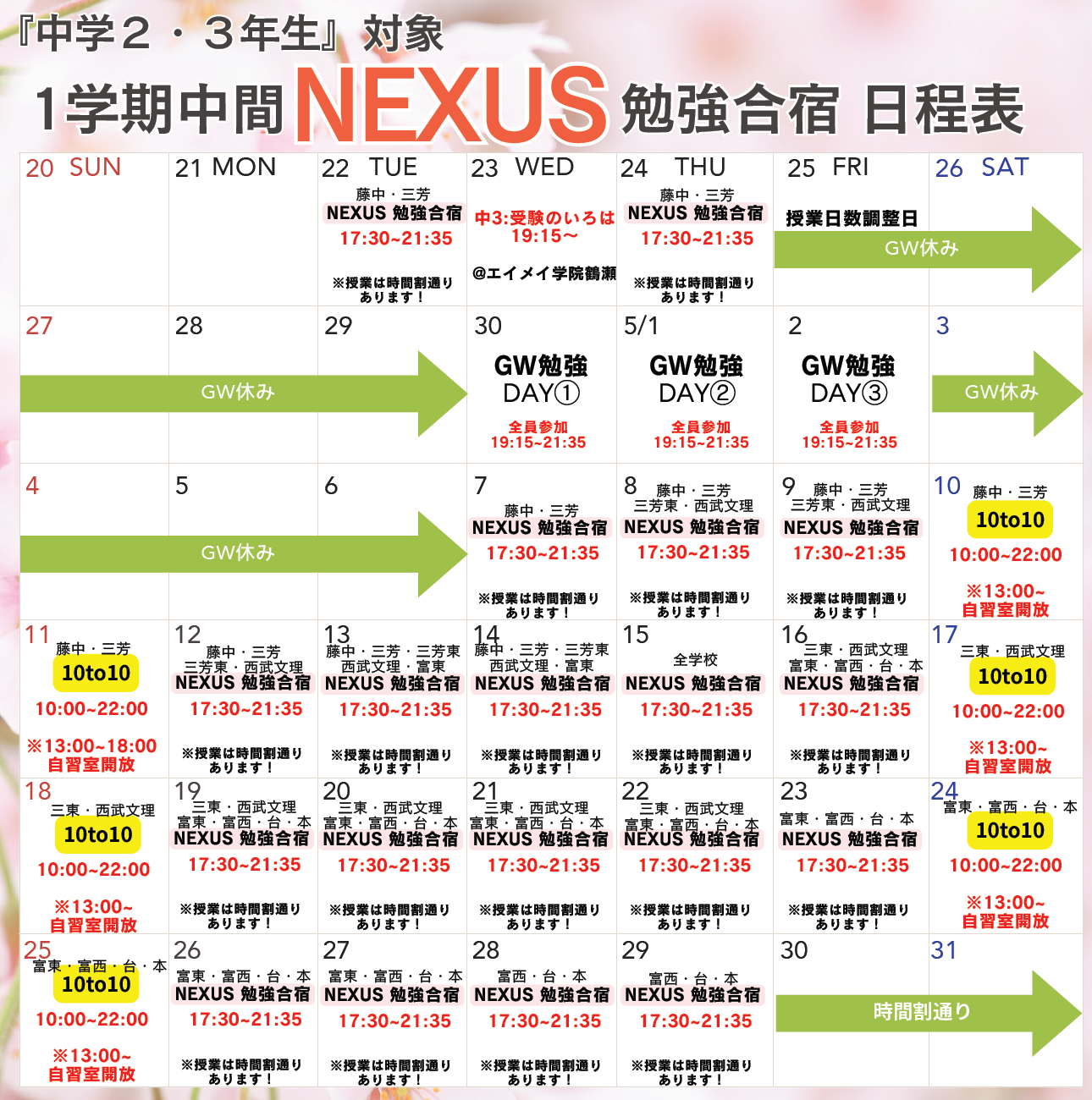4月後半~5月までの日程を