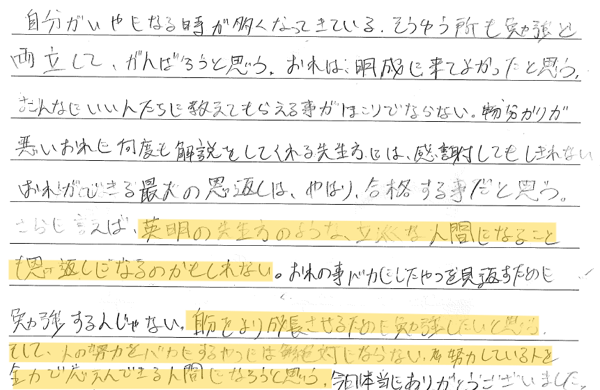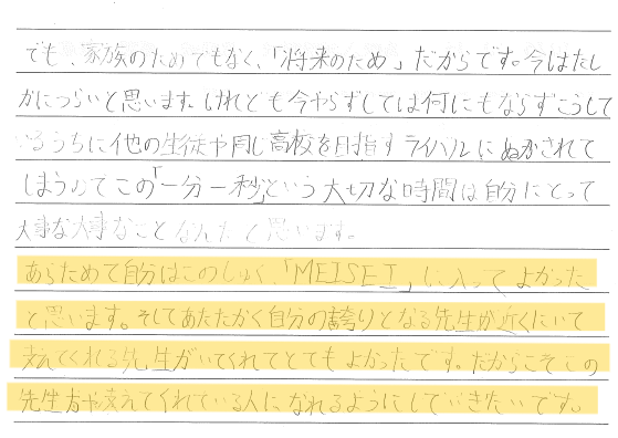 【生徒】明成の先生たちが作ってくれる時間を大切に、結果を出したい