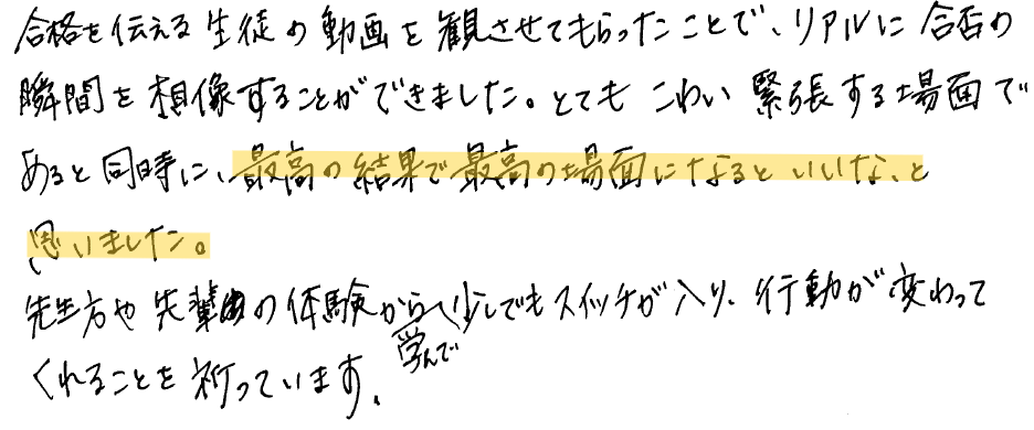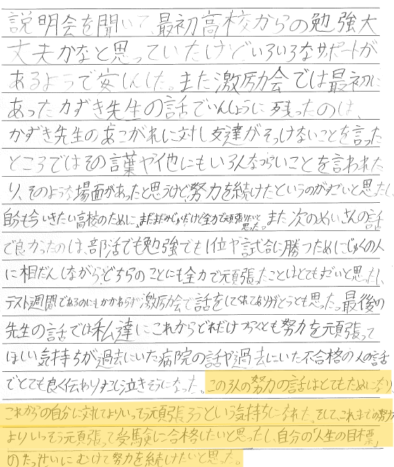 【保護者様】最高の結果で最高の場面になるといいなと思った