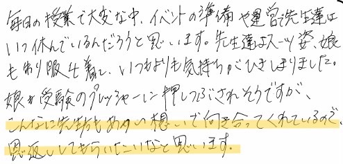 【保護者様】先生方のあつい想いに恩返してもらいたい
