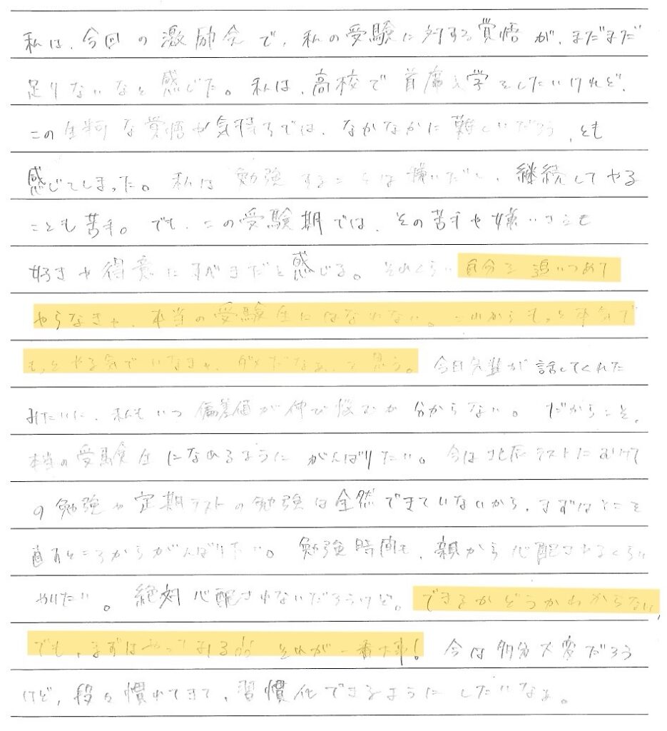 その日のうちから毎日勉強報告を送ってくれた子がいる。