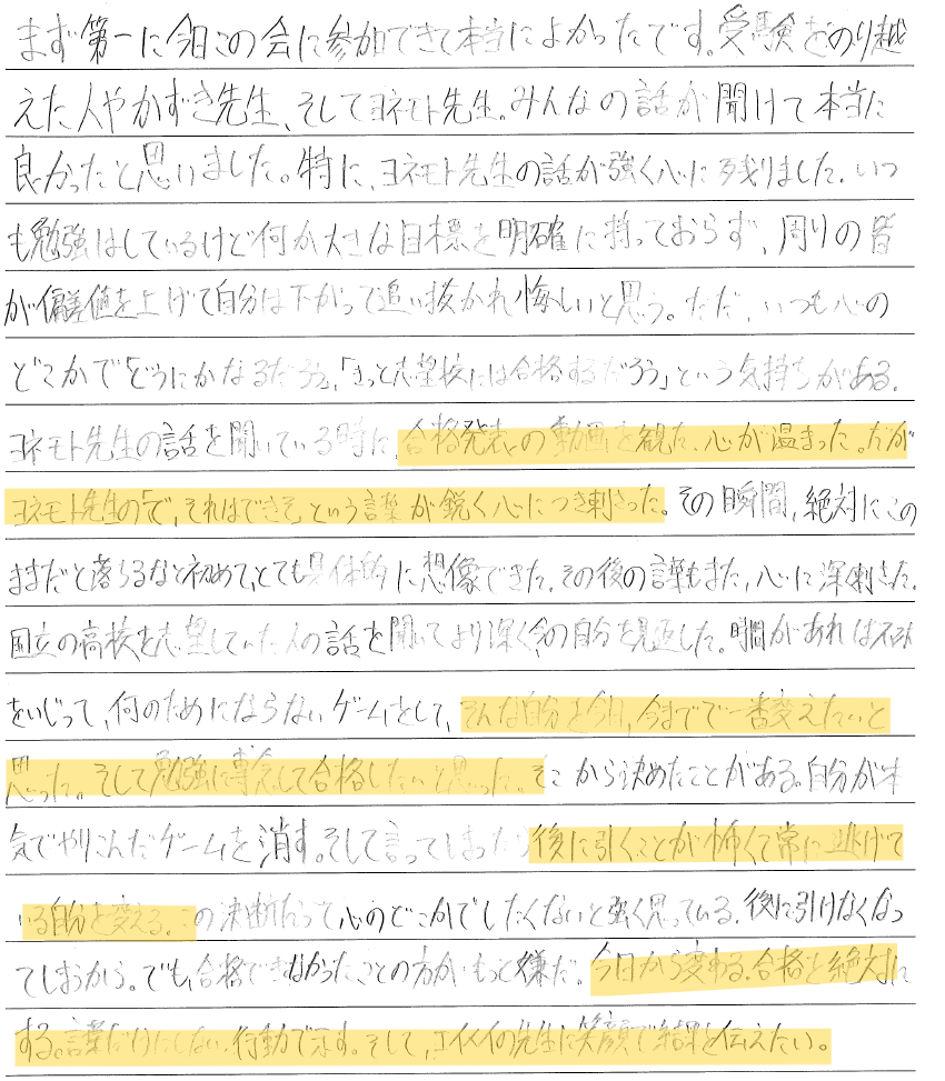 そして、君自身が書いた「感想」の中にあった、あの熱い想い。