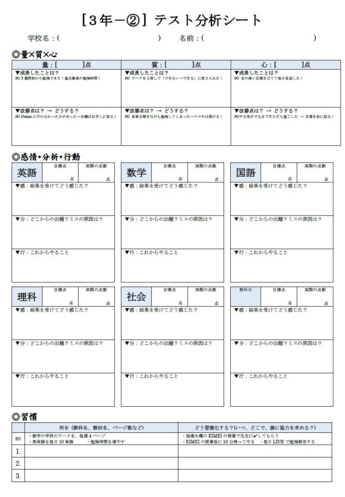 だからこそ返却前に、「【質】【量】【心】」の観点から自分の取り組みを振り返り、