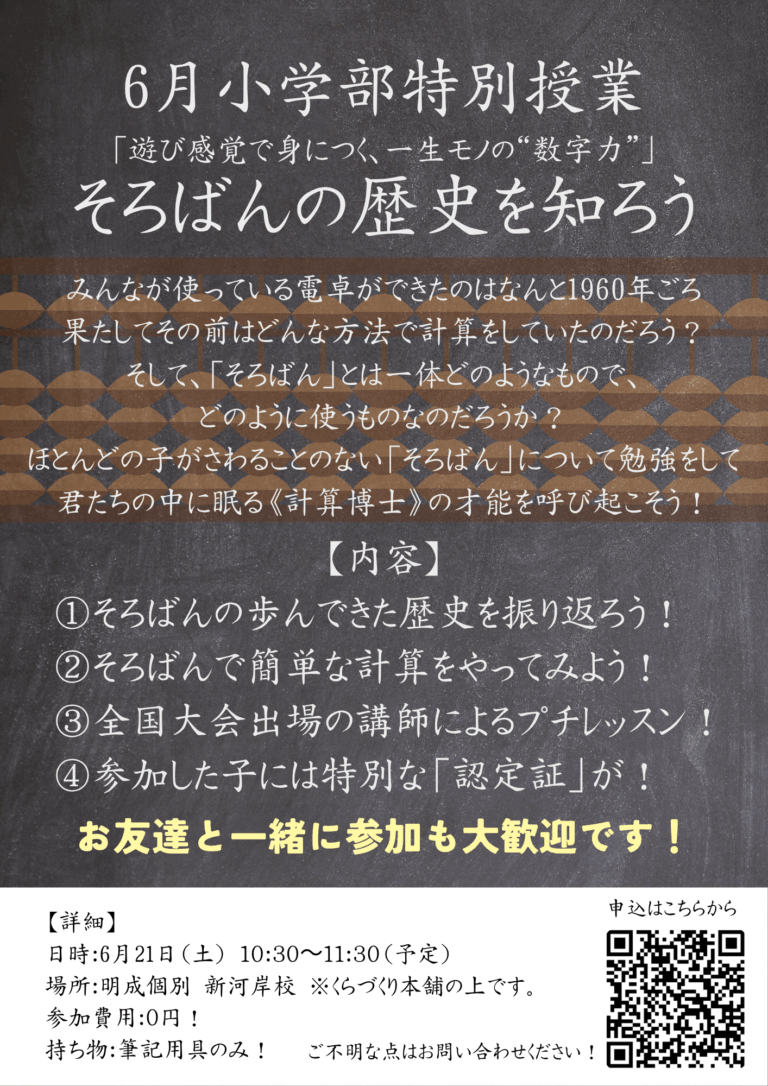 新着情報 【新河岸】小学部 6月 特別授業のお知らせ!