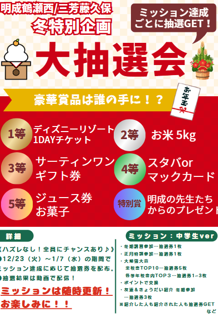 三芳藤久保お知らせ 【鶴瀬西、藤久保】大抽選会 ~冬特別企画~
