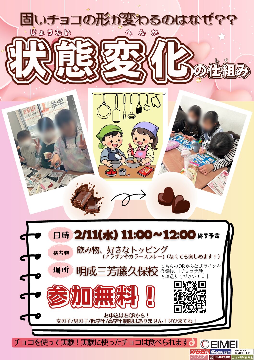 2026年も 理科実験教室開催です! 2月の理科実験教室は、、、 「〜固いチョコの形が変わる […] -