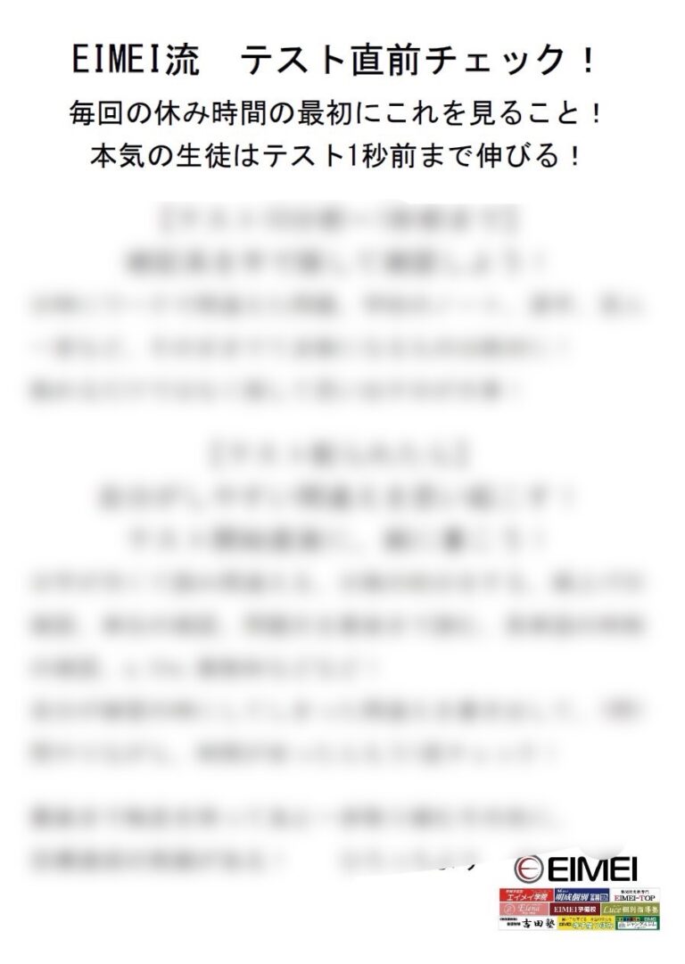 鶴瀬西校舎 明成個別 EIMEI流テスト直前チェック~テスト10分前から1秒前まで~