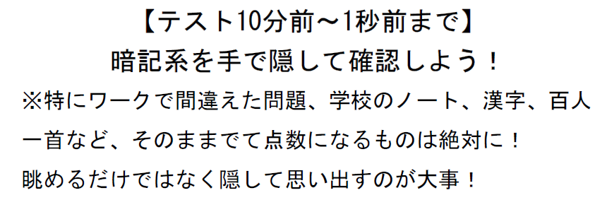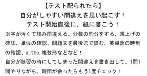 生徒たちには、毎回のテスト前に紙を配布してこのような話をしています!