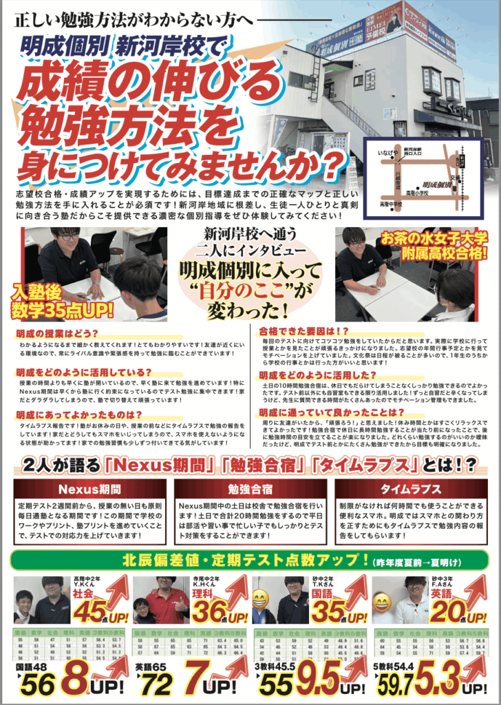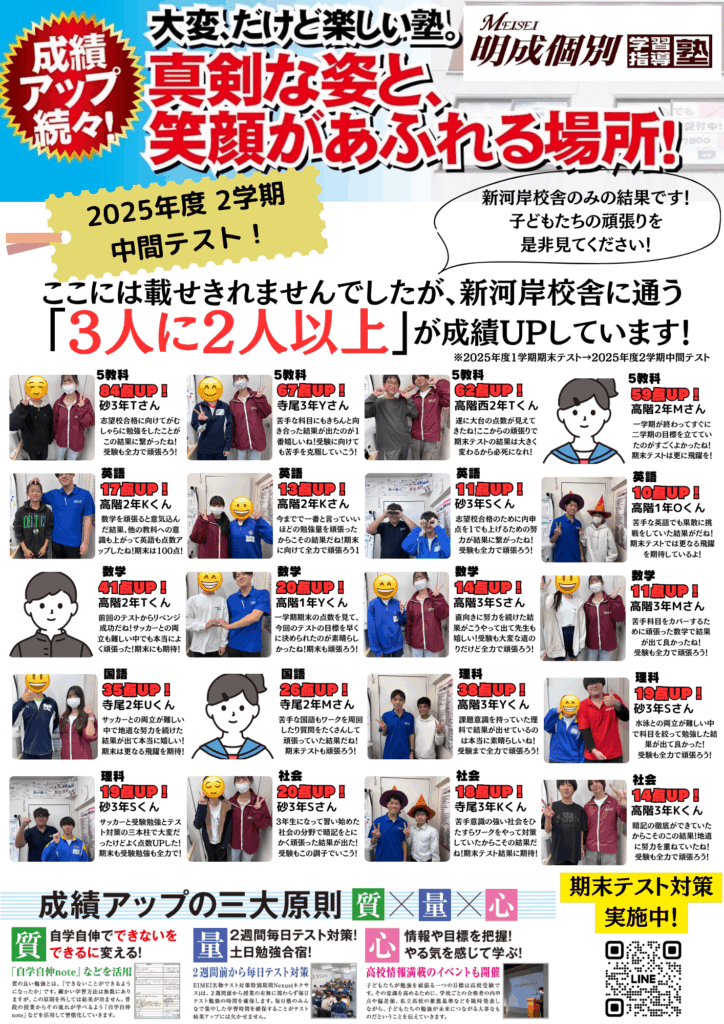 新河岸校舎に通う中学生の二学期中間テストが終了し、点数や学年順位が揃い始めました!