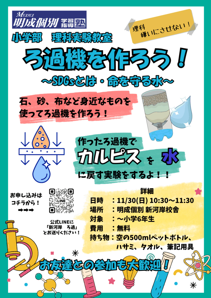 作ったろ過機でカルピスを水の戻す実験を行います!